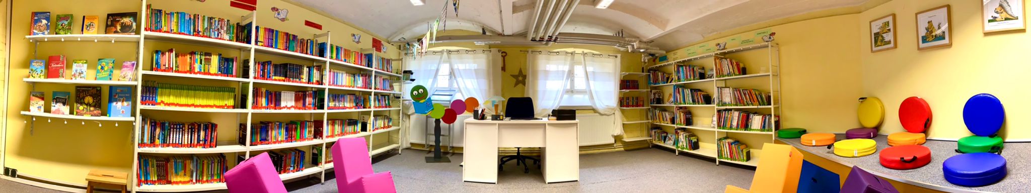 Bei uns gibt es eine Vielzahl an Büchern, dabei bemühen wir uns um eine Mischung von bewährten Klassikern und aktuellen Kinderbüchern. Wir haben Bücher zu den unterschiedlichsten Themen in unserer Bücherei: so z.B. Erstlesebücher in verschiedenen Schwierigkeitsstufen, Tierbücher, Abenteuerbücher, Klassiker, Comics, Bilderbücher, sowie Sachbücher zu den unterschiedlichsten Themen wie Tiere, Technik oder der Welt. Am besten kommt ihr einfach mal vorbei und schaut euch unser Sortiment an!